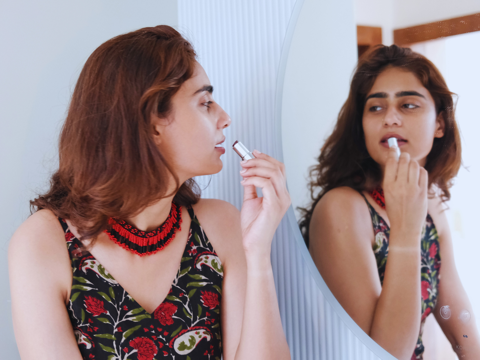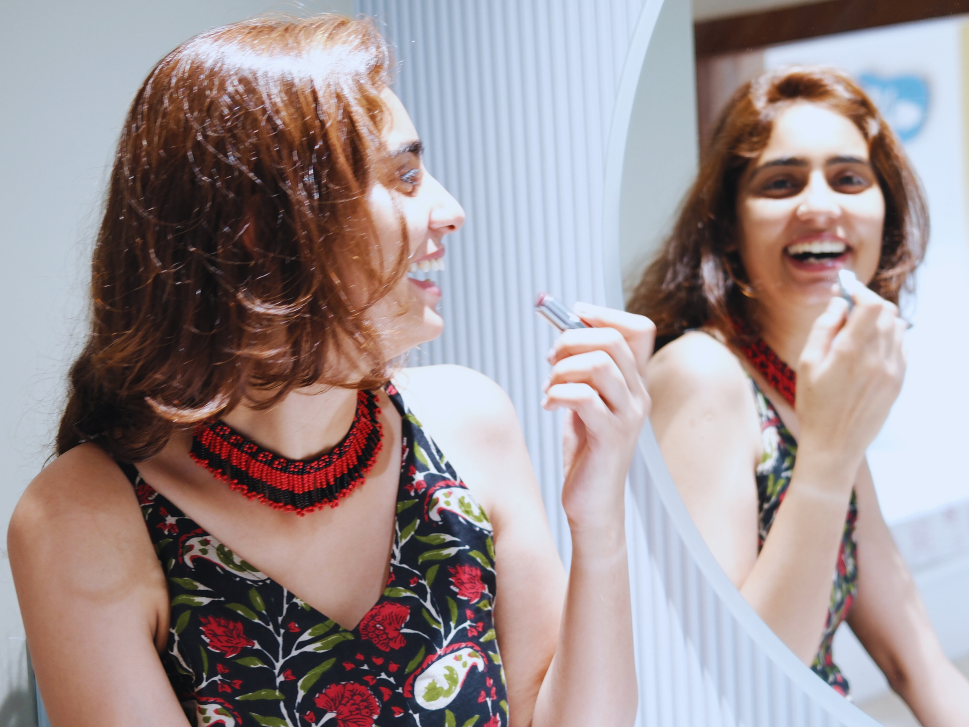 Elegant and fierce, this circular design channels passion through red hues encircled by the strength of black.