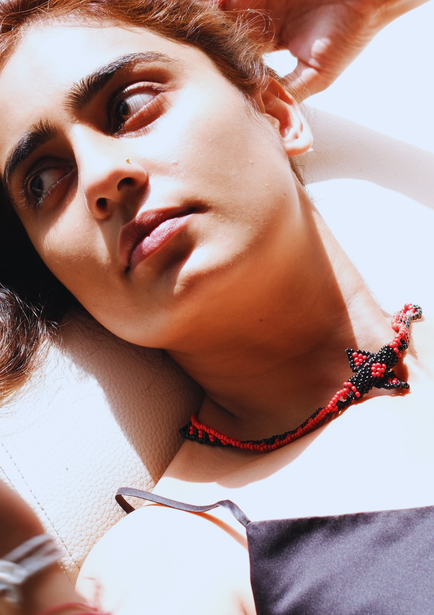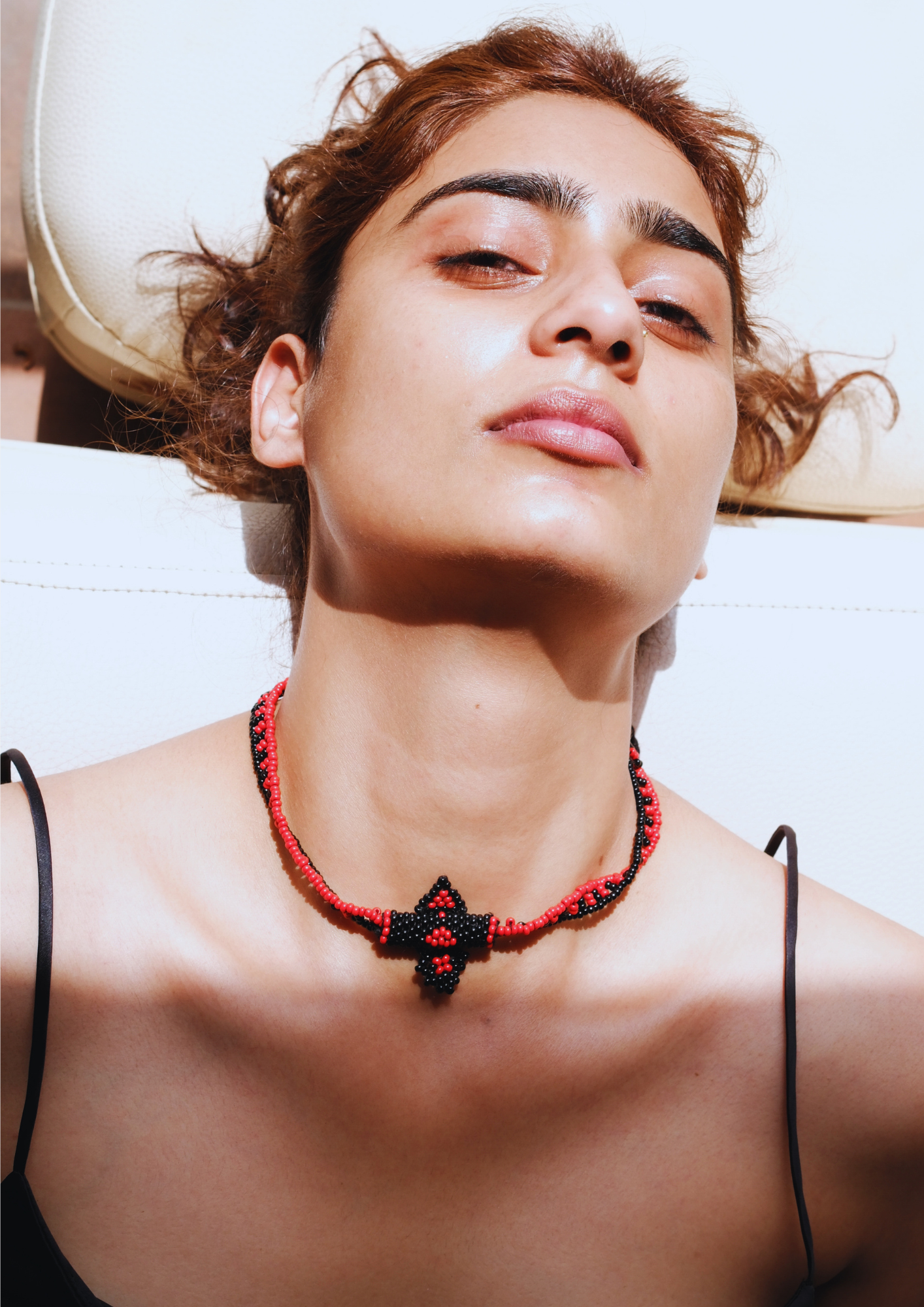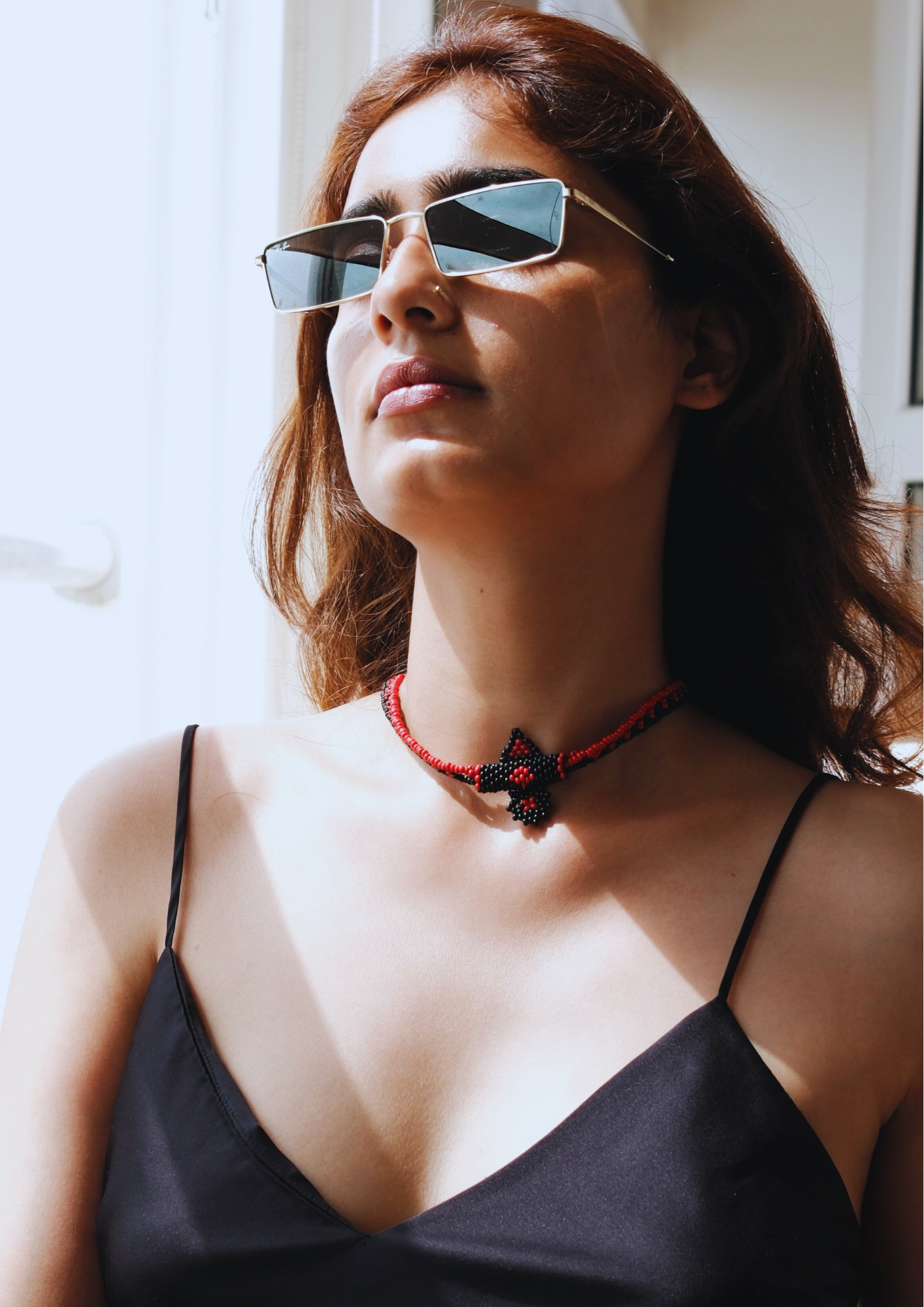 Echoing Rajasthani earth tones, this amulet-style necklace blends fiery orange with deep black for a powerful, grounded presence.