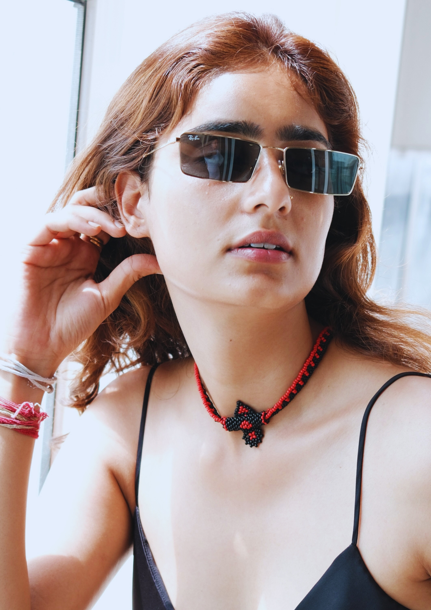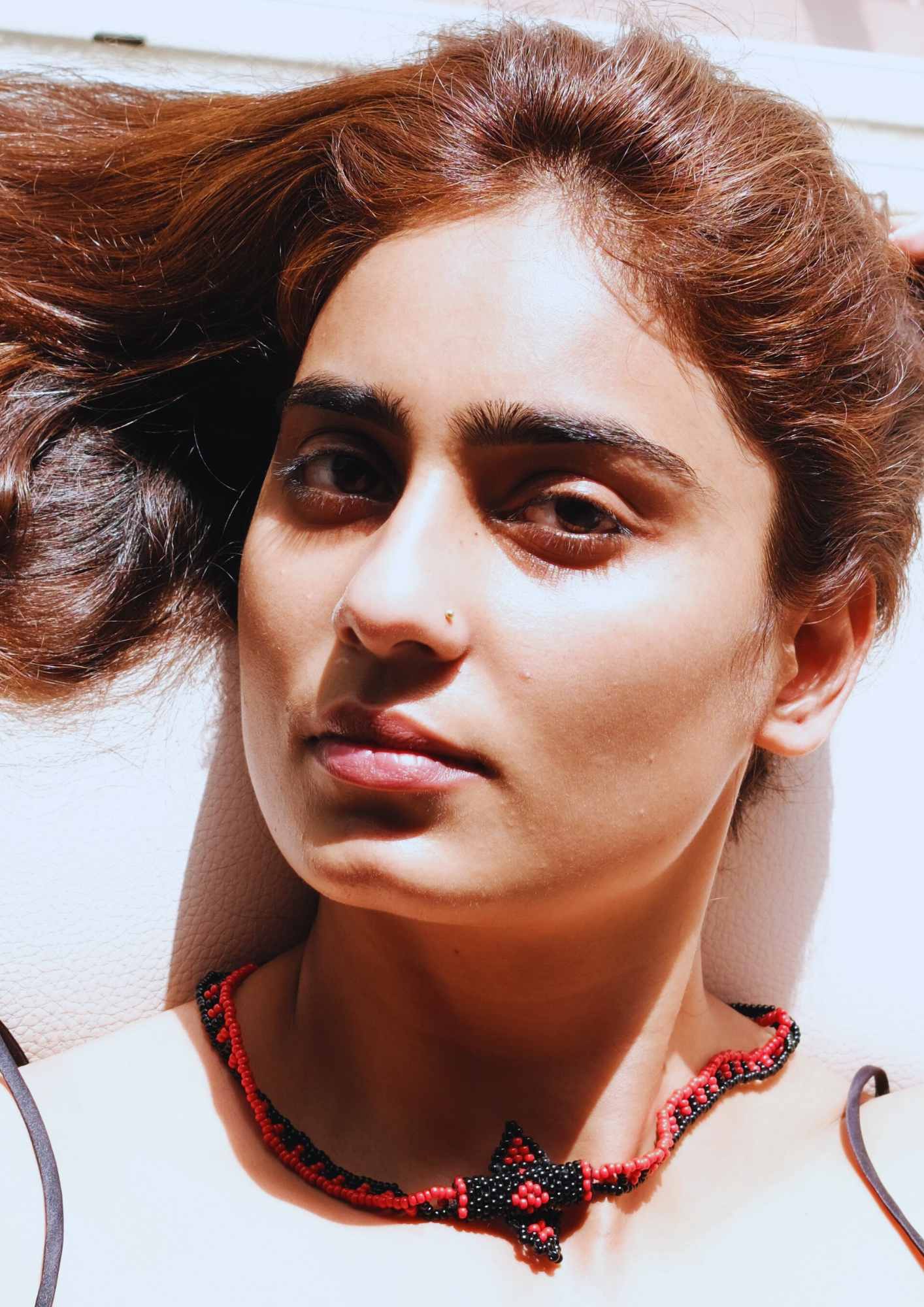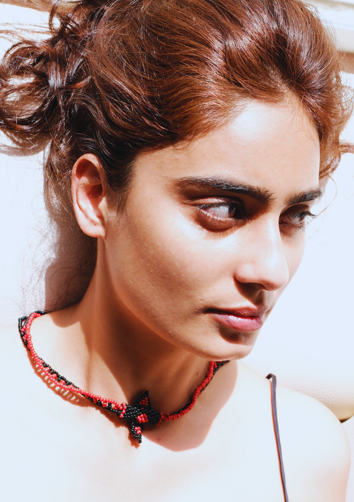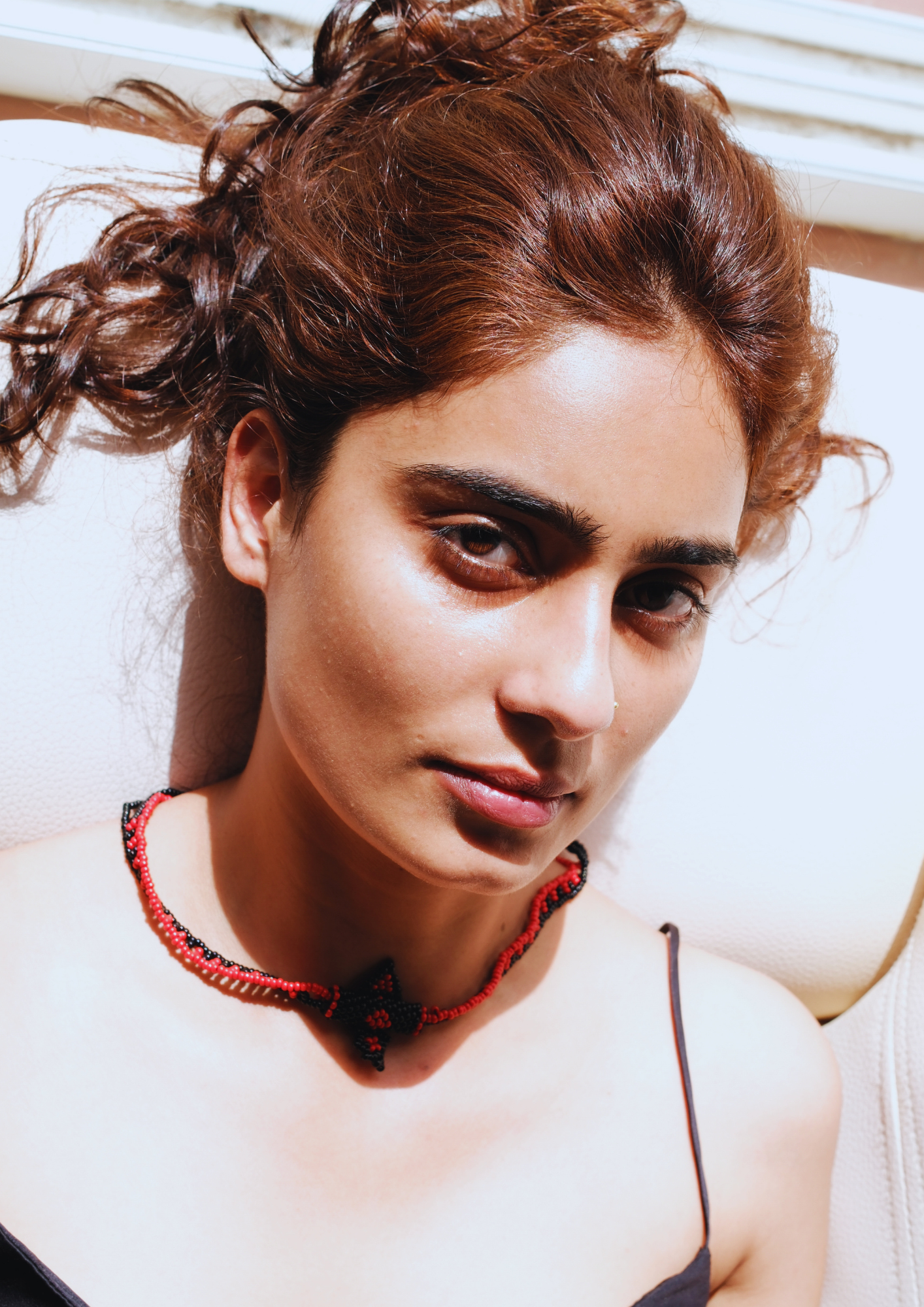 Echoing Rajasthani earth tones, this amulet-style necklace blends fiery orange with deep black for a powerful, grounded presence.